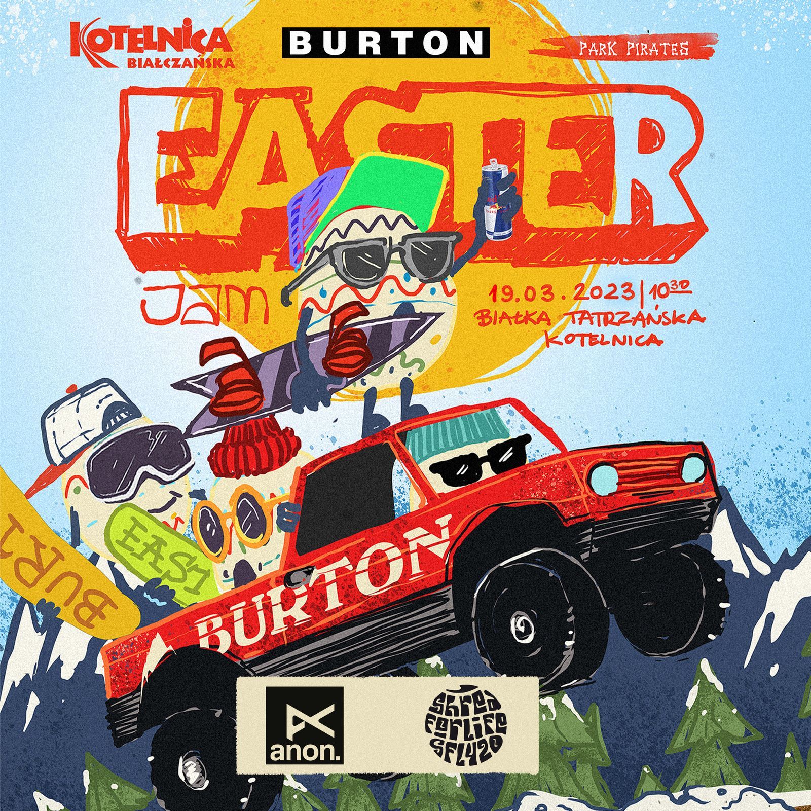 Amatorzy, pro i dzieciaki . Każdy znajdzie coś dla siebie i każdy automatycznie bierze udział w jamie. Każdy też może zgarnąć 1 z 30 upominków od Burton i Anon. Widzimy się 19 marca na Kotelnicy.