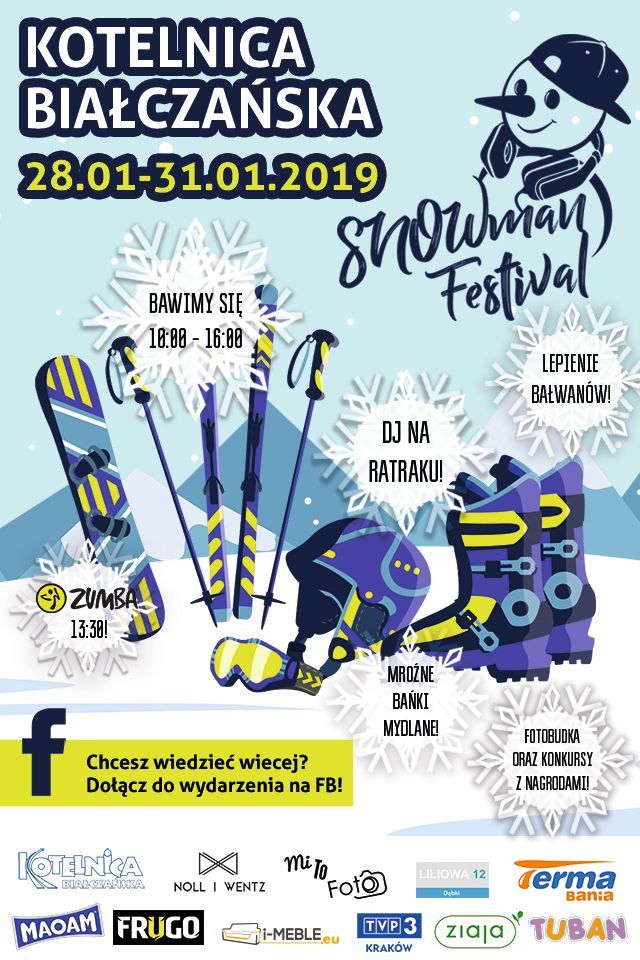 Pierwszy w Polsce SNOWman Festival rusza na Kotelnicy Białczańskiej! Nieważne ile masz lat! Nieważne czy uprawiasz sporty zimowe! Ważne, że będziesz z nami! Dużo śniegu, dobra muzyka, uśmiechnięci uczestnicy, rytmiczne ruchy i ogromne bałwany to przepis na udane ferie zimowe!