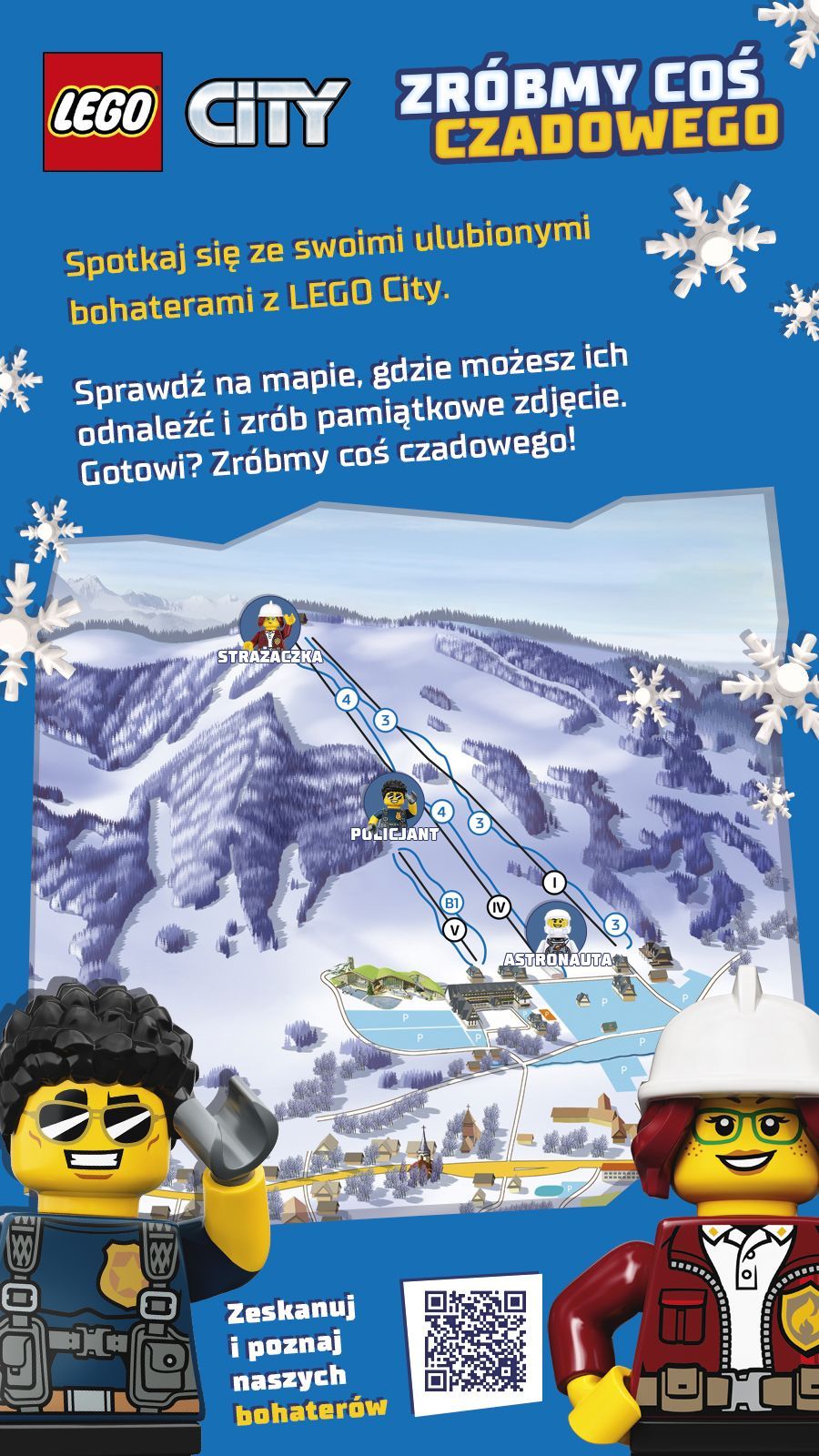 Do 160-centymetrowych „minifigurek” z kultowych zestawów LEGO City, ulokowanych w kilku miejscach na terenie stoku Kotelnica Białczańska, będzie można swobodnie podejść i zrobić sobie zdjęcie. Instalacja będzie czynna do końca lutego br. Dzięki nim dzieci będą mogły uwolnić wodze fantazji i ożywić ulubione postaci z serialu LEGO City Adventures. Fani straży pożarnej z pewnością zachwyci dzielna strażaczka w trakcie akcji ratowniczej. Młodzi adepci jazdy na nartach będą bacznie obserwowani przez policjanta, który mierzy prędkość. Uważajcie, by nie przekroczyć dozwolonej prędkości! Z kolei dzieci marzące o wyprawie z kosmos, będą mogły wraz z astronautą wystartować w kosmiczną przygodę na szczyt kolejki. Wszystkie „minifigurki” umieszczono w nieoczywistych miejscach, pełnych dynamizmu, pobudzających dziecięcą wyobraźnię, zachęcających do działania oraz tworzenia w głowie najróżniejszych, niestworzonych scenariuszy zabawy. Dzięki temu dzieci będą mogły wraz z marką LEGO przenieść się w zupełnie inny wymiar zabawy na śniegu z pomocą swojej wyobraźni.