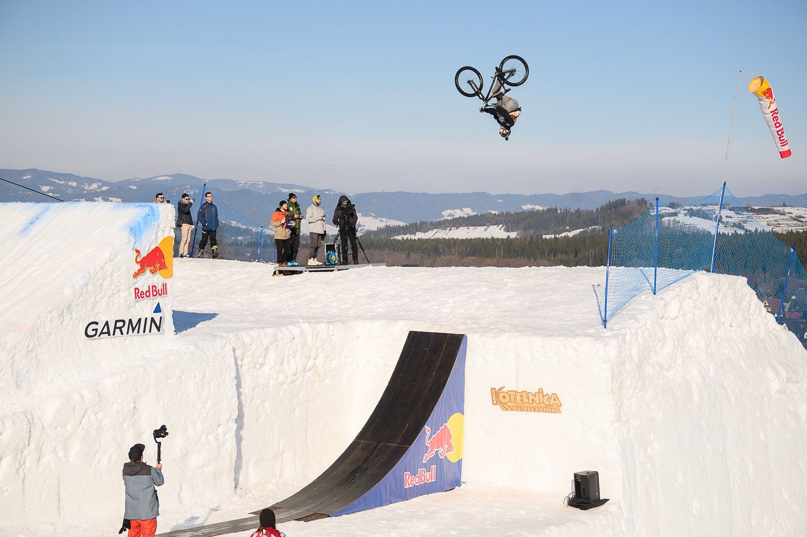 At the end of the day, bikers rode on the ski jump. As in previous years, they created an amazing spectacle, proving to everyone that freestyle biking is also a winter sport. Dawid Godziek secured his victory by presenting twister no hander. Paweł Stachak secured the second place by showing fronflip triple barspin. The third was an Austrian Dorian Macher, who made a backflip with a double tailwhip on the large ski jump. Aleksandra Ciupak, the only woman rider in the competition, landed with the backflip, which aroused loud applause from the audience gathered under the jump.