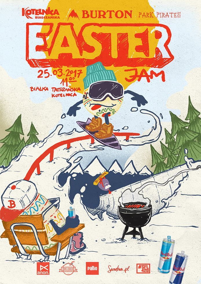 Będzie to dziewiąta edycja inicjatywy, która co roku przyciąga masę snowboardzistów z Polski, Słowacji i Czech. Przygotowaniem snowparku zajmie się znana ze swojej kreatywności ekipa Park Pirates. Snowpark zawsze budowany jest tak, aby spełniał oczekiwania zarówno początkujących snowboardzistów jak i zawodników oglądanych na największych imprezach w kraju. Podczas Jam Session, każdy będzie miał szansę zgarnąć jedną z kilkudziesięciu nagród od Burton Snowboards, Anon Optics którzy wspierają „Easter Jam” od pierwszej jego edycji oraz nowy partner firma Palto. Główną ideą tego wydarzenia nie jest jednak rywalizacja, a możliwość wspólnej jazdy w dobrym towarzystwie, w najlepszym parku w Polsce.