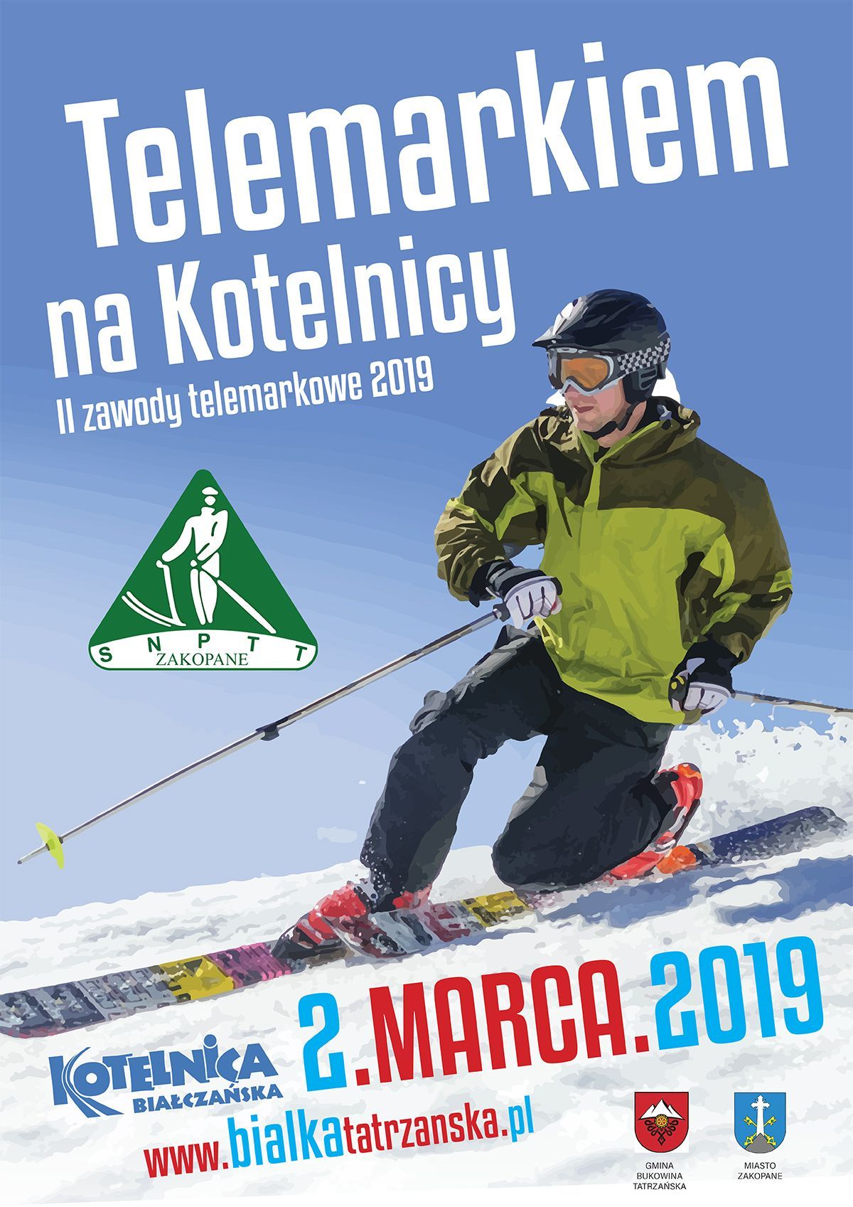Sekcja Telemarku z Klubu SN PTT Zakopane 1907 informuje, że kolejne zawody telemarkowe odbędą się 2 marca 2019 roku. Będą miały miejsce w Ośrodku Narciarskim Kotelnica Białczańska, w Białce Tatrzańskiej a jeszcze dokładniej na czerwonej trasie nr 8a biegnącej z Jankulakowskiego Wierchu.